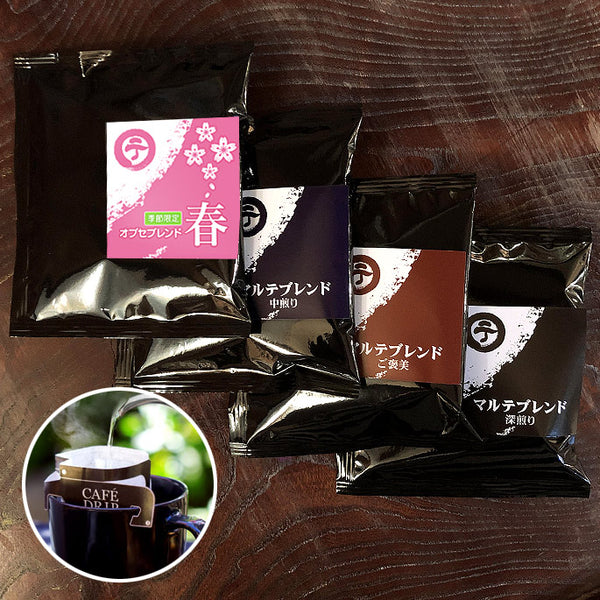 マルテ珈琲焙煎所のドリップバッグは、焙煎した新鮮なコーヒー豆を製造直前に挽き、酸化防止のため窒素ガスを充填しています。包装は遮光性のあるアルミフィルムを使用して劣化の原因となる光を遮断することで長く品質を保ちます。